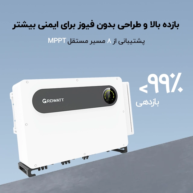 اینورتر Growatt، یک راهکار پیشرفته، قابل اعتماد و اقتصادی برای پروژههای خورشیدی تجاری و صنعتی است. این دستگاه با توان خروجی بین 100 تا 150 کیلووات و طراحی سهفاز، پاسخگوی نیاز سیستمهای خورشیدی بزرگ با توان بالا است. بهرهمندی از هشت MPPT مستقل در اینورتر، انعطافپذیری بالایی در طراحی آرایههای خورشیدی فراهم میکند و موجب افزایش بهرهوری انرژی در شرایط نوری مختلف میشود.